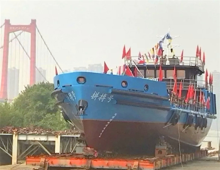 2018年10月18日,由武船集团船舶公司承制的500HP码头物资转运机动船“拼搏号”顺利下水。这标志着该船的主体建造工作已圆满完成,即将进入到内装和系统调试阶段。