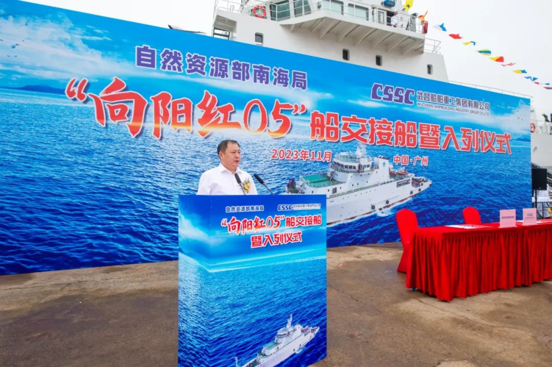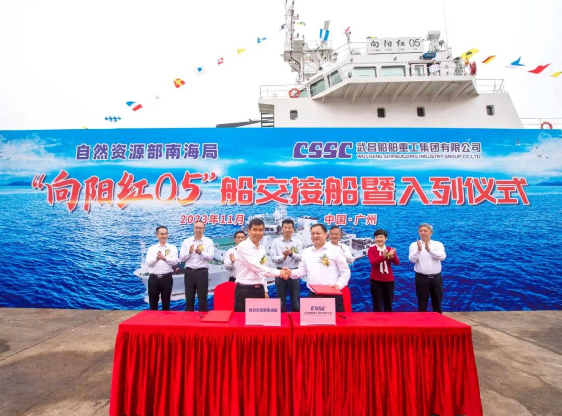 11月29日,由中国船舶集团武昌造船为自然资源部南海局建造的“向阳红05”科考船提前一个月顺利完成交接入列仪式!武昌造船民船产能持续释放,生产计划准点运行,新造船模式又一次得到成功验证。