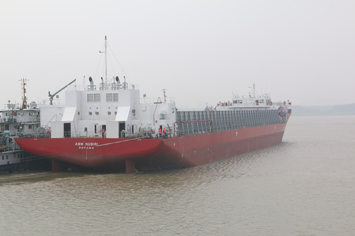 4月24日上午10时18分,由武船集团海工院设计、双柳武船承建的13000DWT甲板运输船首制船驶离双柳武船基地2号系泊试验码头,前往南通瑞泰基地进行最后的交付工作。船东代表PT ABM公司总经理伊曼纽尔・杜,武船集团党委书记、董事长杨志钢,副总经理田军等领导参加了现场送船。