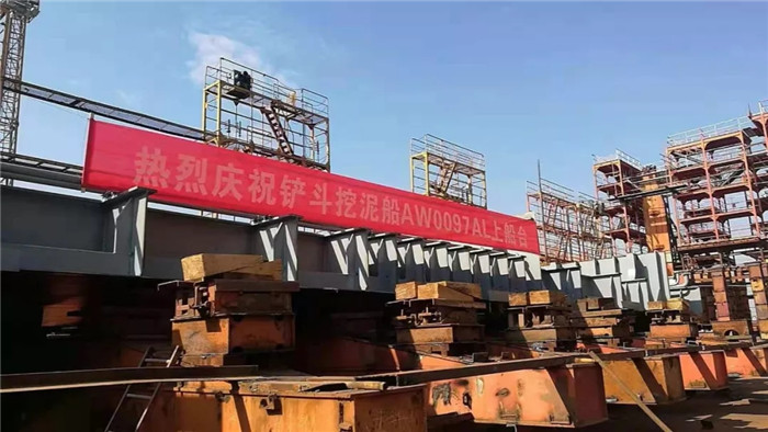 近日,长江三峡坝区航道维护铲斗挖泥船于武船集团总部顺利上船台,为该产品后续分段建造、船台合拢等打下良好基础。