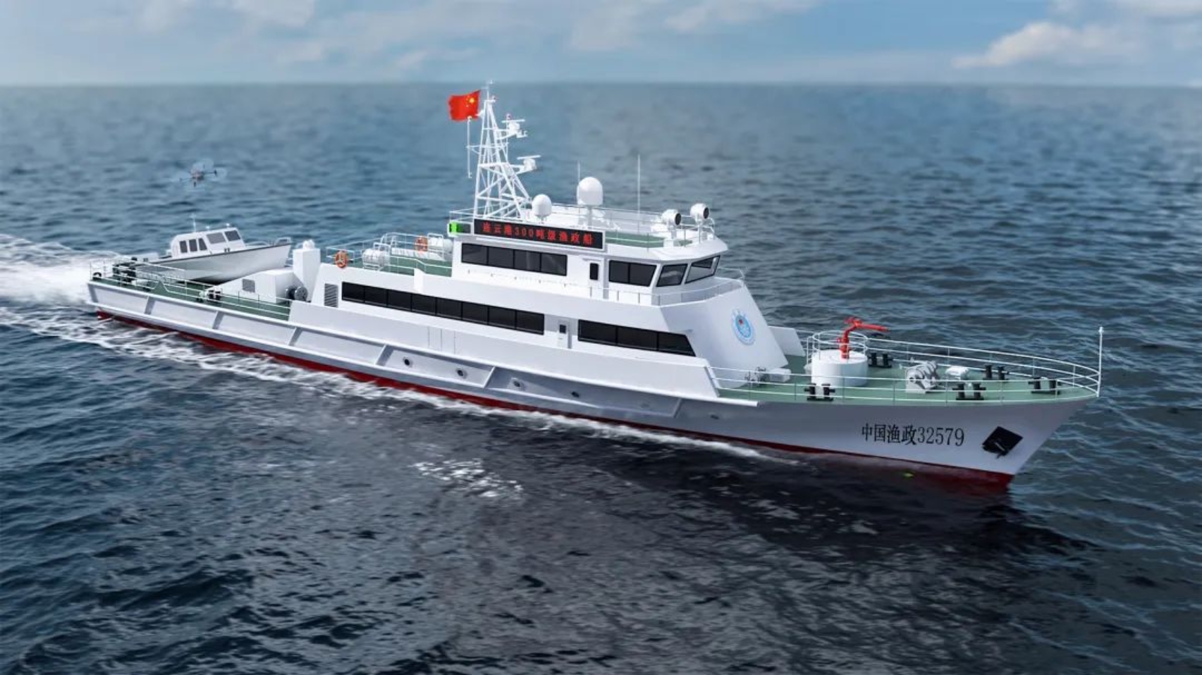 全船总长53米,型宽7.8米,型深4米,船型为深V型,倾斜船艏、方尾,采用通长甲板、双机、双桨,直线推进方式;主船体为钢质,甲板室为铝质。建成后将代表国家行使渔业行政执法权,有效履行连云港管辖海域渔政、渔业等相关渔业行政执法管理;满足执行200海里专属经济区巡航管理任务的需要;兼顾渔业海难辅助救助等任务。