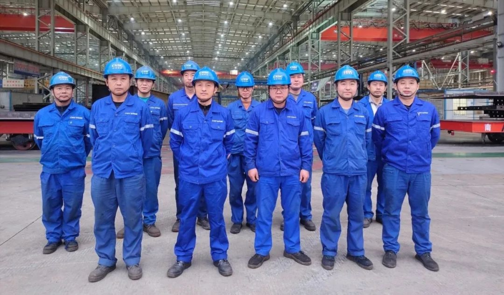 重工公司装焊制造中心装配一组年度主要完成黄茅海跨海大桥、紫云桥的单元件以及1100TEU集装箱船船体分段等项目装配工作。班组秉承“一次到位、一次做好、一次做对”的自主质量管理要求,精益求精,实现装配一次交检合格率100%。