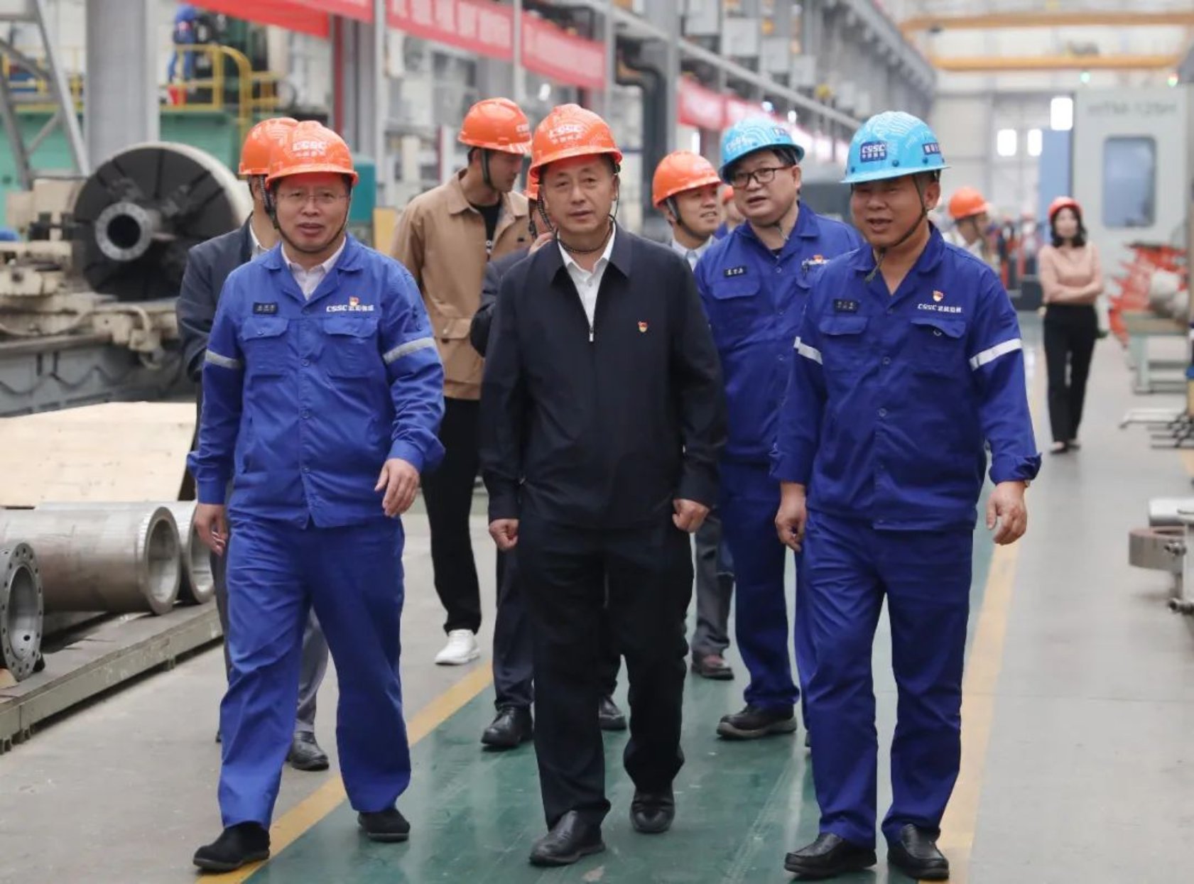 陈红山一行首先来到了武昌造船双柳厂区伟人广场瞻仰毛主席铜像,随后深入车间一线,参观了武昌造船机电公司轻型加工车间生产现场、党建活动阵地和劳模工作室。
