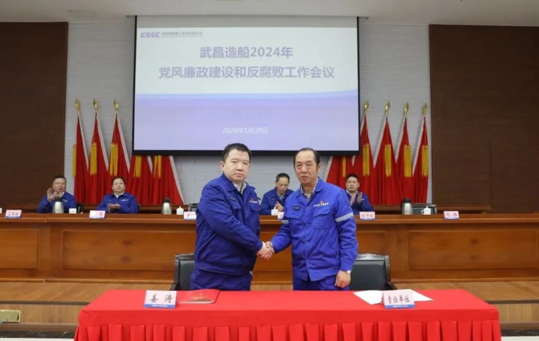 1月29日,中国船舶集团武昌造船召开2024年党风廉政建设和反腐败工作会议。武昌造船党委书记、董事长姜涛出席会议并讲话。党委副书记、总经理梁师清主持会议,并传达了二十届中央纪委三次全会精神和集团公司2024年党风廉政建设和反腐败工作会议暨警示教育大会精神。党委委员、纪委书记左照海作了题为《忠诚履职 担当作为 以纪检工作新质效助推价值创造 为公司改革深化提升 高质量发展提供坚强保障》的工作报告。公司领导田军、陈仲明、刘祎,公司助理级领导、公司纪委委员,中层副职及以上管理人员参加会议。