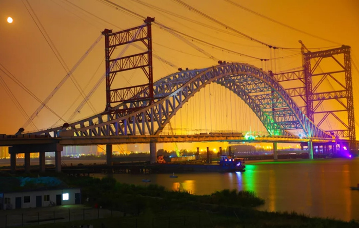 苏岭山大桥主拱在6月28日合龙后,武船重工股份项目部迅速启动了主梁吊装的工作,继续发挥项目临时党支部的作用,迎难而上,先后克服了主梁安装与临时水平系杆安装、吊杆安装在高空交叉作业、体系转换施工技术难度极大、因环保要求白天焊、割、刨作业被限制等重重困难,合理优化吊装工艺、工序,组织开展了多项劳动竞赛,将原来每个主梁节段吊装时间从9小时优化到了6小时,从一天一吊优化到一天两吊。在主桥合龙冲刺阶段,武船重工股份后场梁段及时供应,同时加派施工人员连续作业,确保了最终合龙节点。