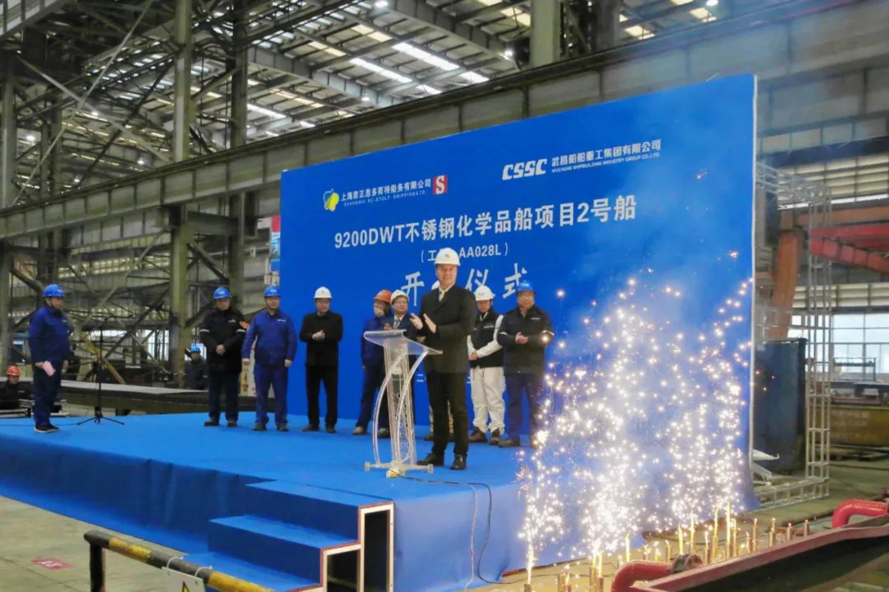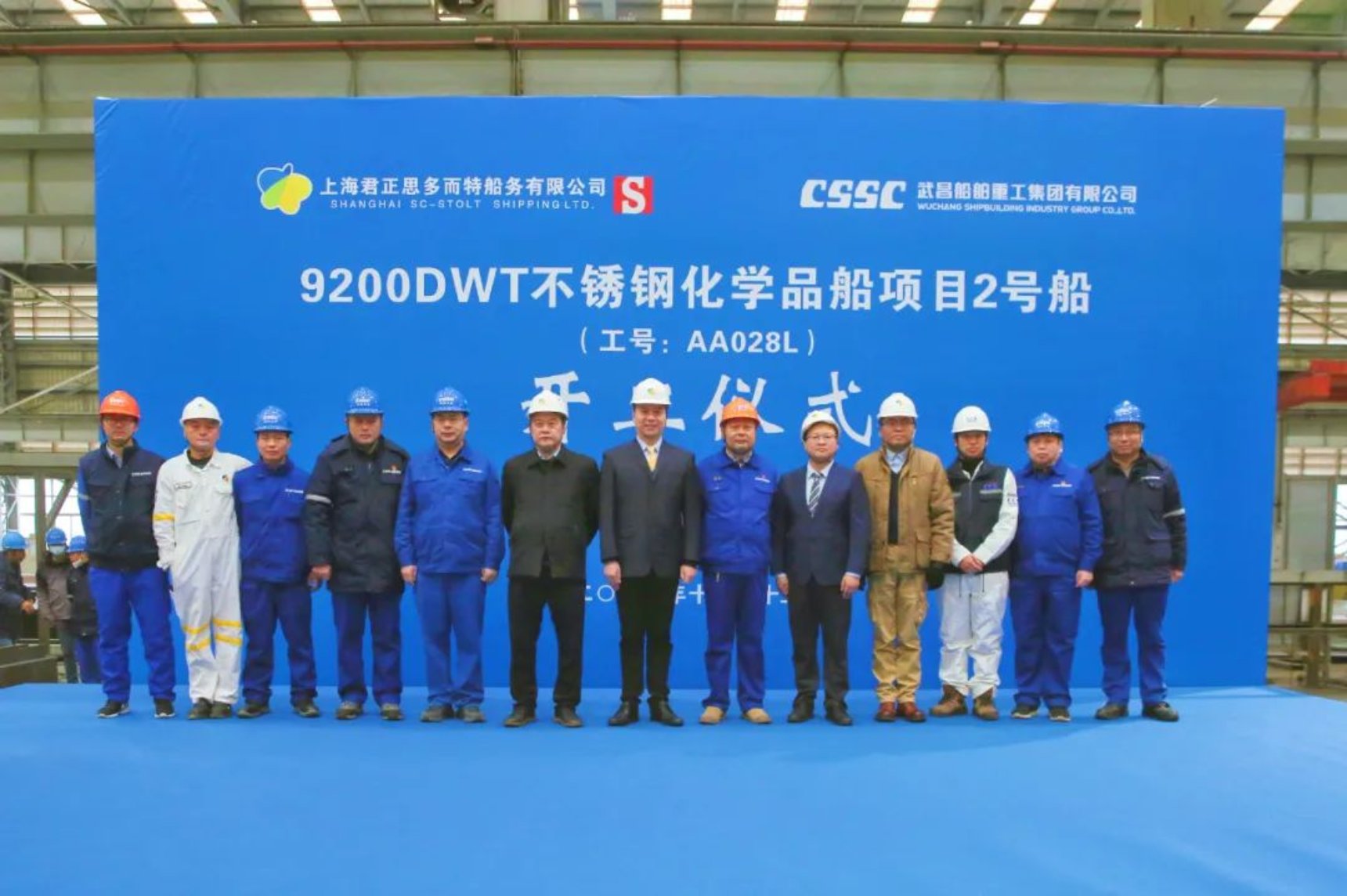 12月15日10时18分,由中国船舶集团武昌造船为上海君正思多而特船务有限公司建造的9200DWT不锈钢化学品船2号船正式开工!