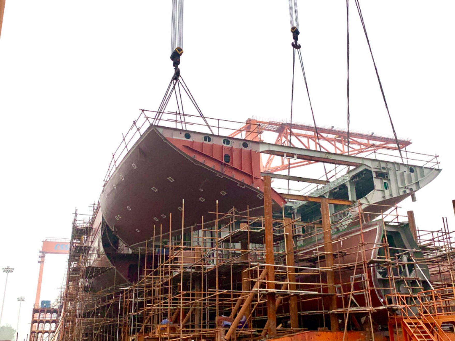 12月18日,由中国船舶集团武昌造船承建的希腊1100TEU集装箱船1号船 顺利完成上船台节点!