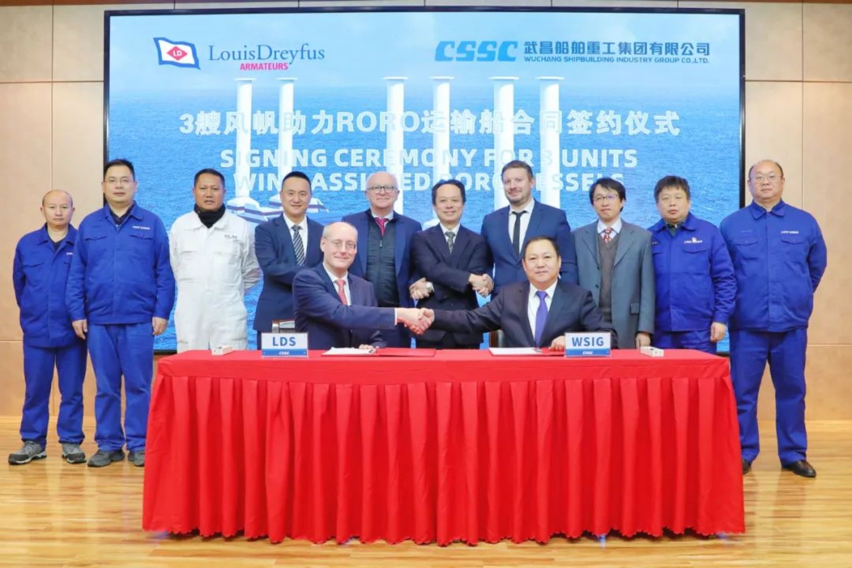 新年开新局,奋斗创佳绩!2024年的第一个工作日,中国船舶集团武昌造船迎来首个经营开门红!武昌造船与长期合作伙伴——法国LDA公司再度牵手合作,和其下属公司LD SEAPLANE SAS 签订3艘风帆助力RORO运输船建造合同。