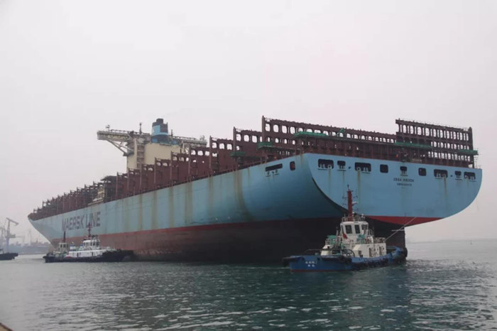 5月15日,武船集团北船重工承制的马士基E系列埃斯特尔集装箱改装项目在北船重工青岛武船大坞完成坞内改装任务并顺利出坞,该船为北船重工修船分厂承接马士基系列改装及常规坞修的第106艘船舶,也是新北船统筹利用大坞资源以来,在青岛武船进行坞内施工的第5艘大型船舶。