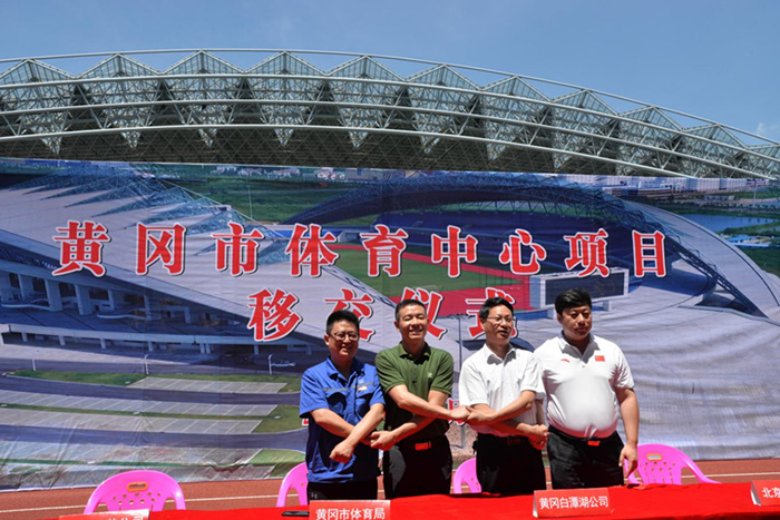 近日,由武船集团重装公司投资建设的黄冈市体育中心项目在体育中心现场顺利完成移交。黄冈市政府副市长陈少敏、市委副秘书长陈裕勇,武船集团副总经理杨少稀,重装公司党委书记、董事长李建操、副总经理魏翔、黄冈白潭湖片区党工委书记、筹委会主任孙迎松,黄冈白潭湖投资发展有限公司党委书记、董事长、总经理杨名森,市体育局局长余觅等领导参加了移交仪式。市国资委、市财政局、市住建委、市国土资源局、市规划局、市审计局、市房管局、市城投公司、中南建筑监理公司、造价监管湖北省建行(黄冈支行)等单位见证了移交仪式。