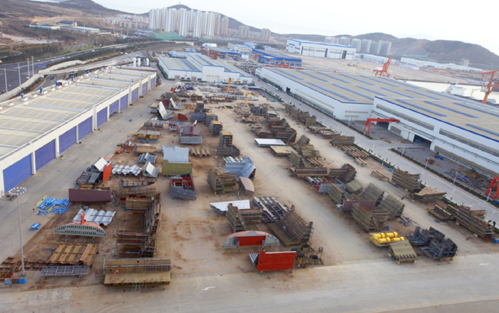 分段舾装工场长475m,宽90m 面积:42750