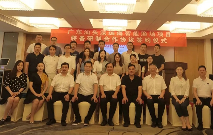 2018年8月22日,武船集团湖北海洋工程装备研究院有限公司及中船重工海融装备(海南)有限公司与广州中誉科技产业控股集团有限公司在广东省汕头市举行签约仪式。在武船集团党委书记、董事长杨志钢,汕头市海洋与渔业局局长周昭勇的共同见证下,与中誉集团签订了《广东汕头深远海智能渔场项目装备研制合作协议》。