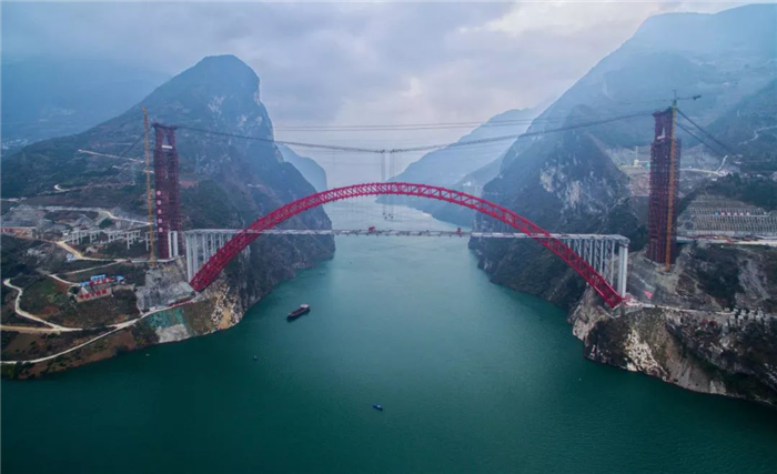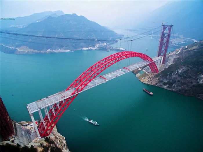 12月27日上午,随着最后一节钢主梁成功吊装就位,由武船重工股份承建的世界最大跨度钢箱桁架推力拱桥钢主梁顺利实现合龙,合龙仪式在桥址南岸举行,大桥业主、设计、总包、监理单位,武船重工股份副总经理、工会主席姜海松及公司项目部成员参加合龙仪式。