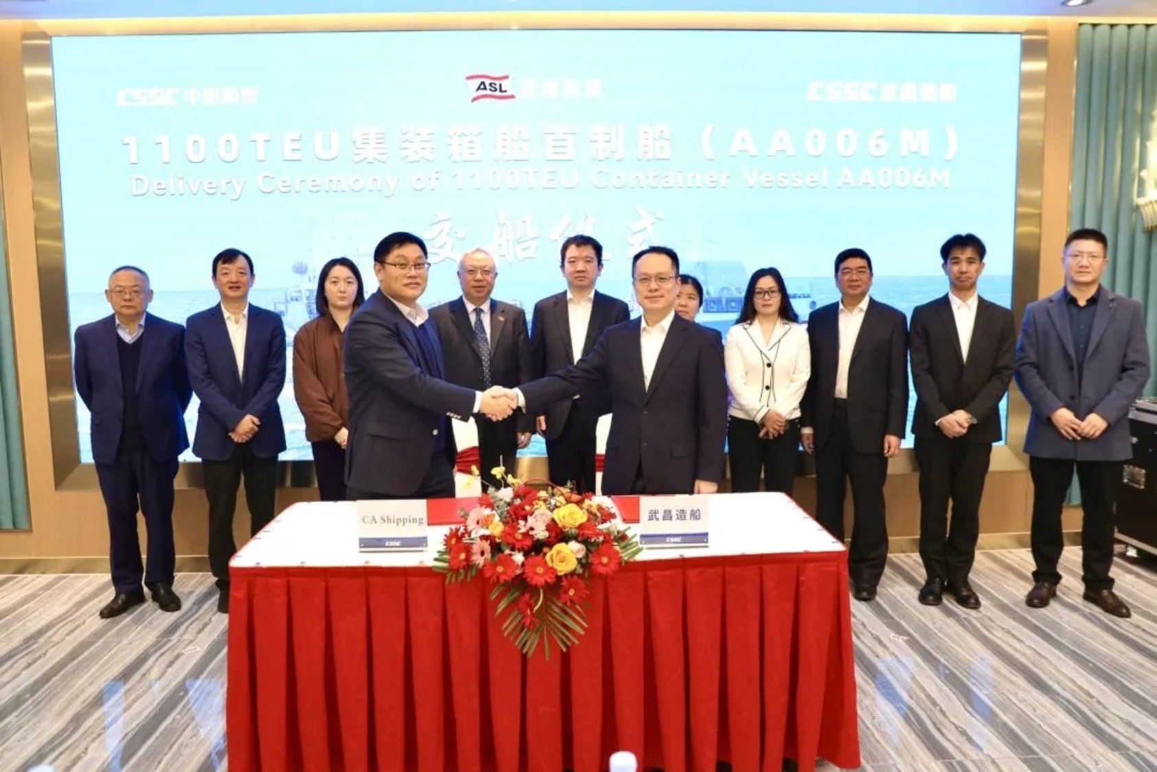 腊月风和意已春,1月18日由中国船舶集团武昌造船为CA SHIPPING建造的1100TEU集装箱船首制船较合同提前成功交付!这是公司继7200DWT不锈钢化学品船3号、4号船和“向阳红05”船之后,提前交付的第四艘船,该船的顺利交付意味着武昌造船成功实现新年交付“开门红”,标志着公司在商船市场已形成提前交付的良好势头,昂首迈入“以学促干、价值创造、精益求精”的新征程。