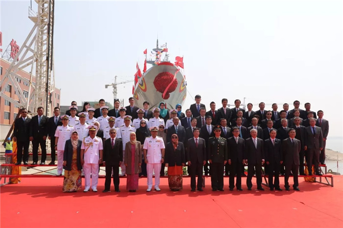 4月15日,马来西亚濒海任务舰项目首舰下水仪式在中船重工武船集团双柳基地举行。