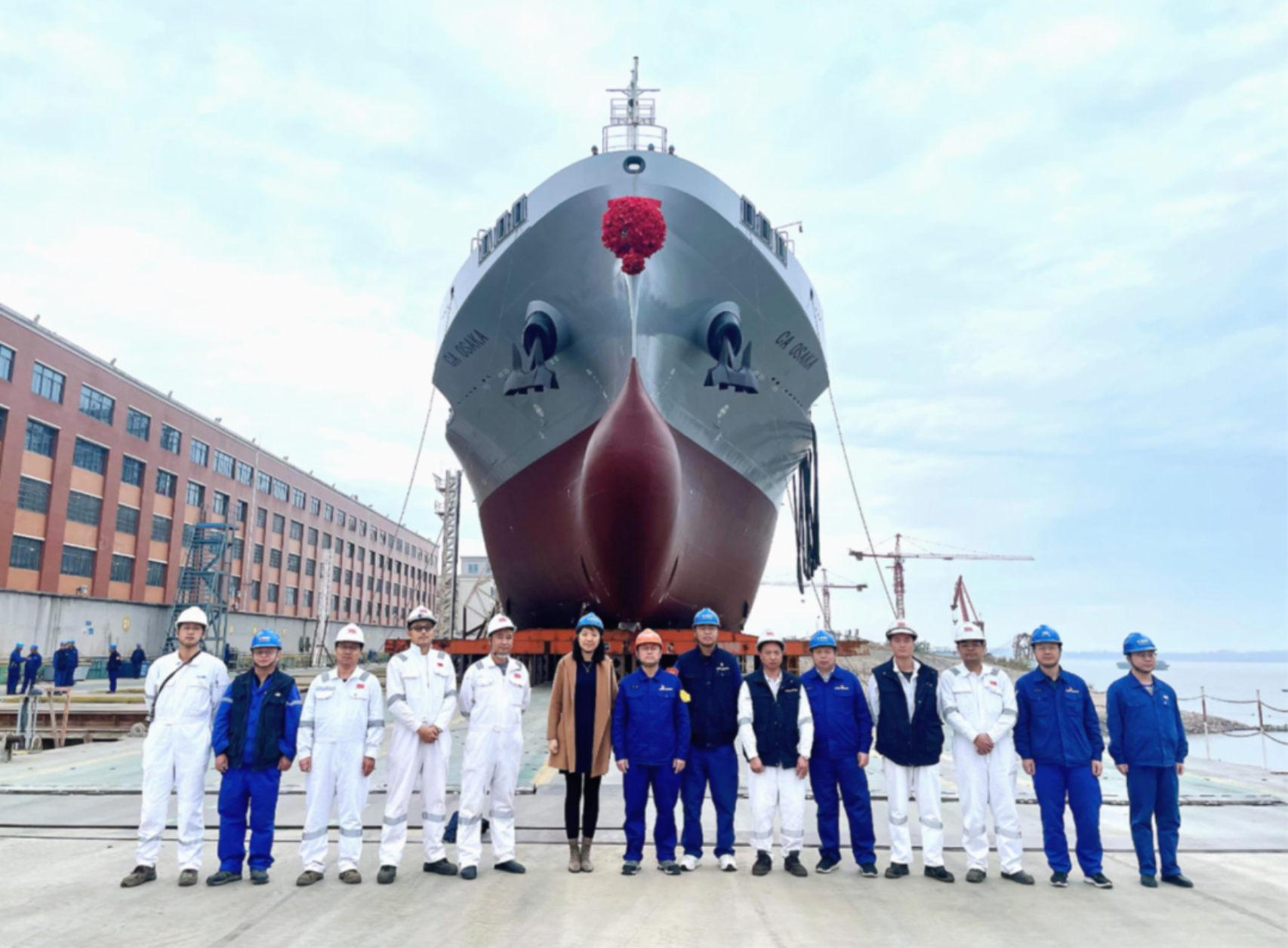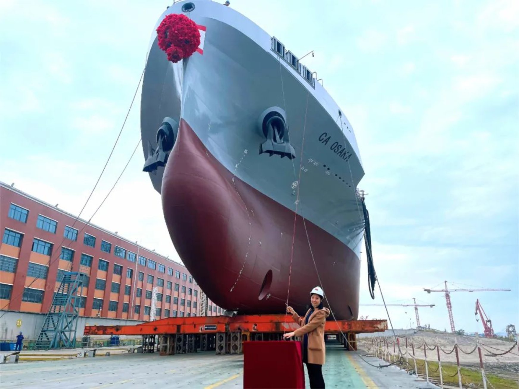 该船是武昌造船为CA SHIPPING(中船租赁和亚海航运成立的合资公司)建造的四艘1100TEU集装箱系列船的第二艘船,该船顺利下水标志着公司该系列船节拍化建造再提速。武昌造船党委委员、副总经理刘祎,日本船级社,哥伦比亚船舶管理公司等相关单位人员出席下水活动。