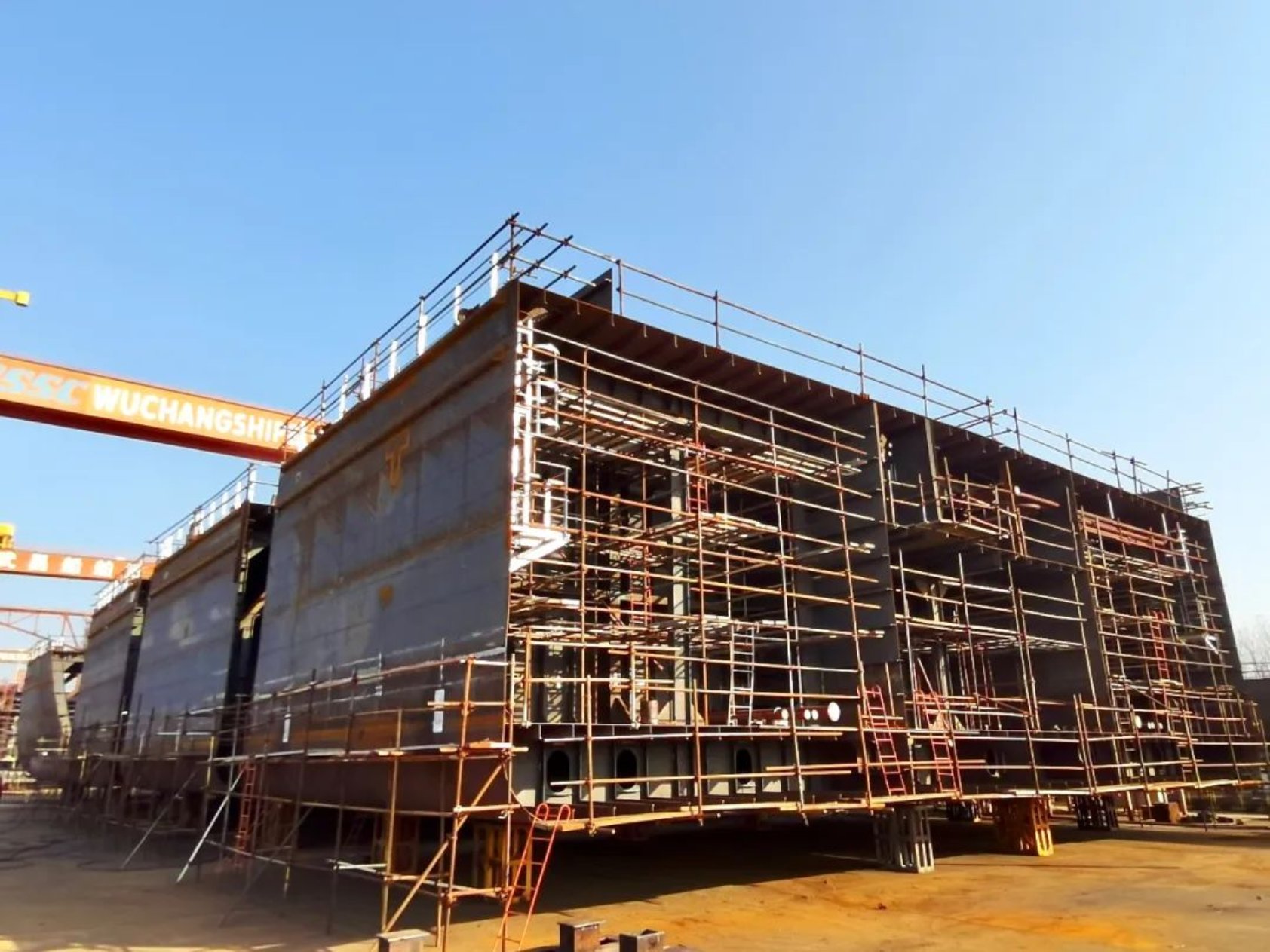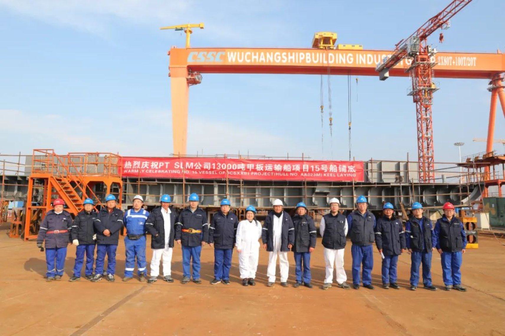 12月22日下午2点38分,由武昌造船承建的第15艘13000DWT甲板运输船顺利实现上船台节点,比计划时间提前5天,同时标志该船正式进入船台搭载阶段。船东、船检以及相关单位负责人参加上船台仪式。