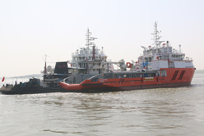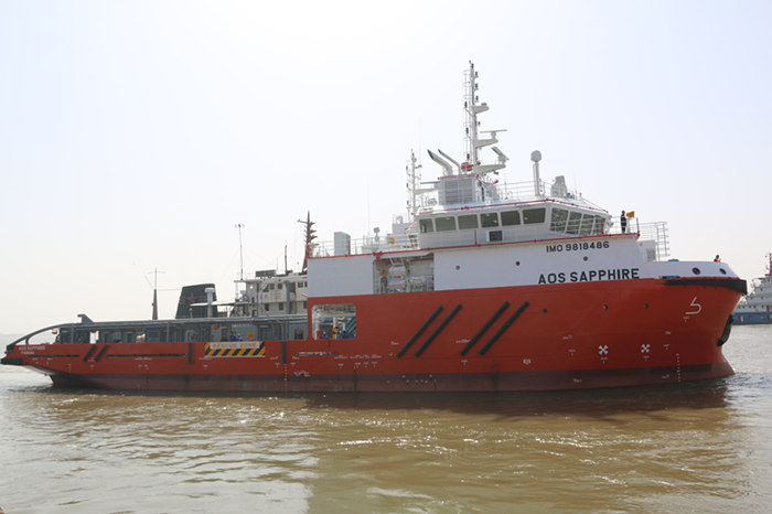 此次两艘船是三型七艘船项目最后两艘船舶,前5艘船舶已于3月27日在南通顺利交付船东。三型七艘船是船东大西洋海事集团同阿拉伯美国石油公司的租约合同订制的海工船舶产品,产品具有吃水浅、重量重心和噪音震动控制要求严格、并附加阿拉伯美国石油公司额外个性化设计和建造要求等特点,其中45米WUV-4号船总长45米,型宽13米,设计吃水3.0米;58米AHTS-2号船总长58米,型宽16米,吃水4.4米。本系列船舶为操锚拖带供应及安全守护船,可携带燃油、淡水、钻井水、浮油泥浆、盐水、散货水及甲板货物,并带有浮油回收、对外消防及拖曳海上钻井平台功能,同时可进行救援和维护作业。