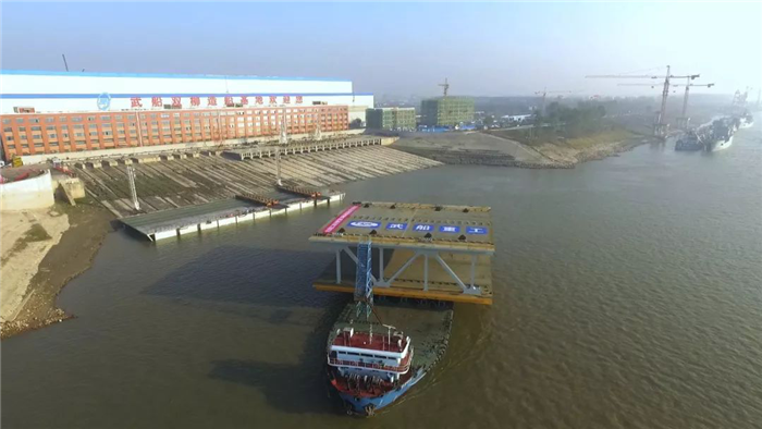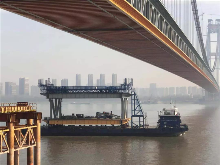 12月18日,世界最大跨度的双层公路悬索桥�C�C杨泗港大桥合龙钢桁梁在公司双柳厂区装船发运,这标志着由武船重工股份承建的杨泗港大桥全桥51节钢桁梁节段已全部发运完毕。合龙钢桁梁发运仪式在船台举行,武船重工股份总经理吴跃波,中船重工集团首席技术专家、武船重工股份总工程师阮家顺,副总经理、工会主席姜海松,武船集团群团工作部、规划部、双柳武船、运输单位和公司参建代表共计60余人参加仪式。